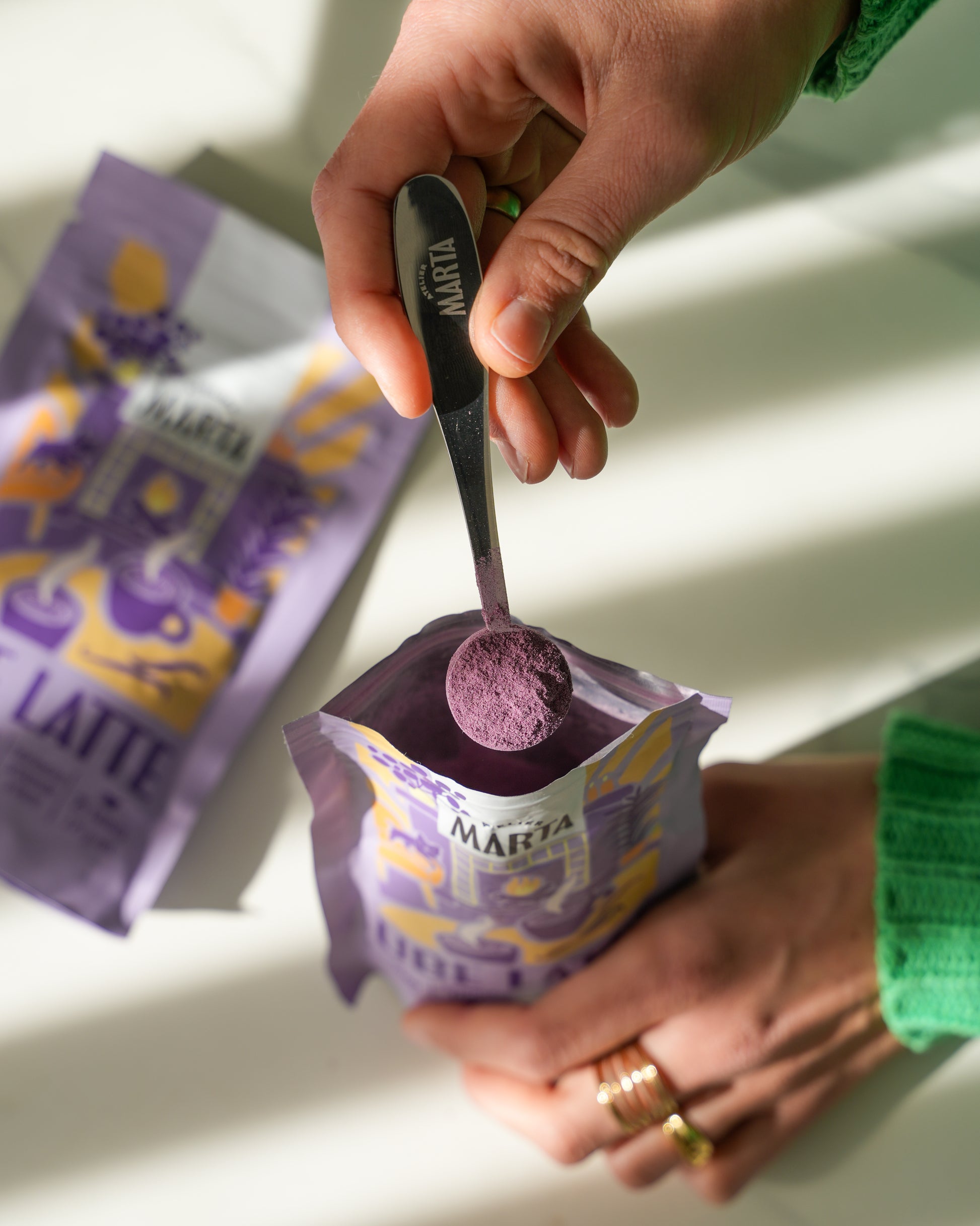Rien de plus simple ! Ajoutez une cuillère à café (5 g) de votre latte Atelier Marta dans une tasse et ajoutez un liquide chaud. Vous pouvez simplement le boire avec de l’eau chaude comme un thé ou ajouter du lait chaud (on aime avec lait d’avoine ou coco…). Gouter pour aimer !