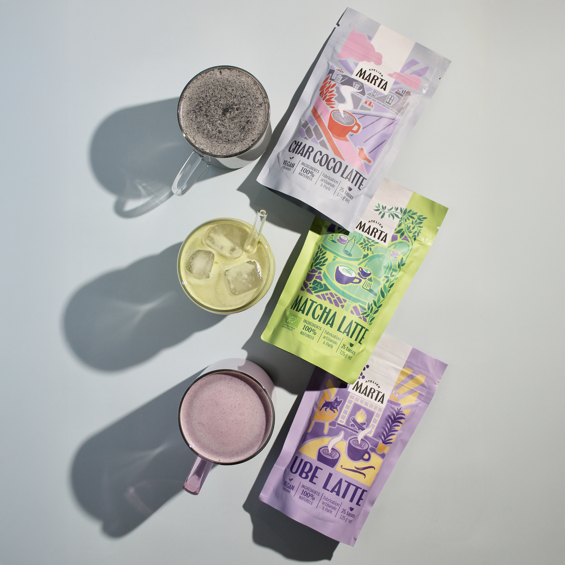 Le Trio Char-Coco, Ube & Matcha réunit trois lattes aux personnalités complémentaires. La douceur enveloppante et chocolatée du Char-Coco, la rondeur crémeuse et vanillée de l’Ube Latte, et l’énergie végétale du Matcha s’équilibrent pour accompagner chaque moment de la journée. Un pack pensé pour explorer différentes textures, saveurs et ambiances, du réconfort à la clarté d’esprit.